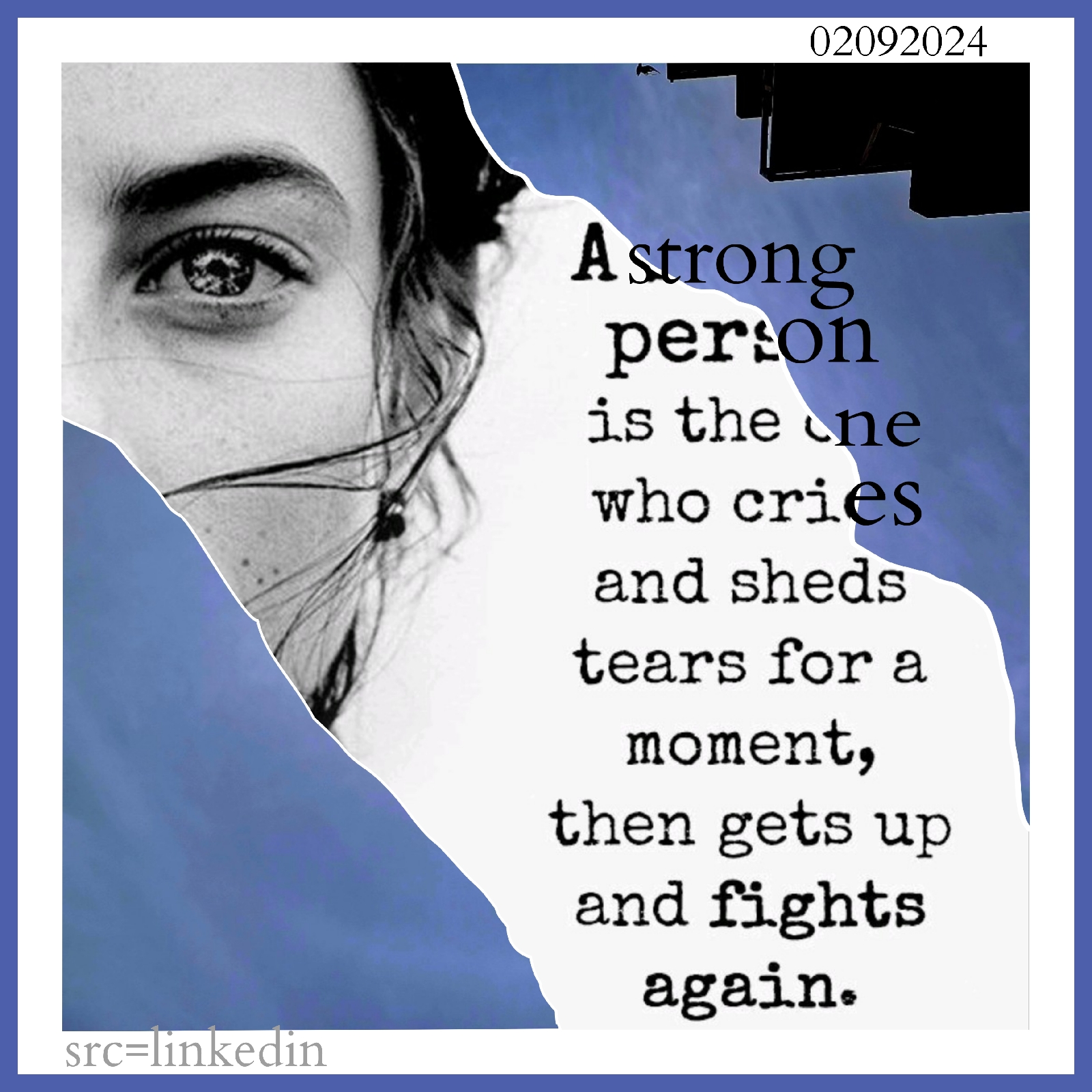A strong person is the one who cries and sheds tears for a moment, then gets up and fights again